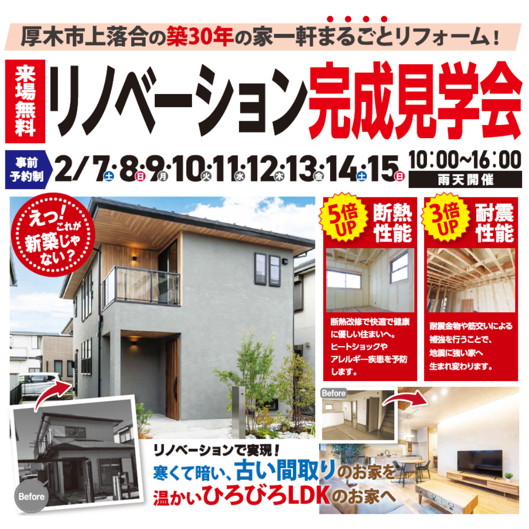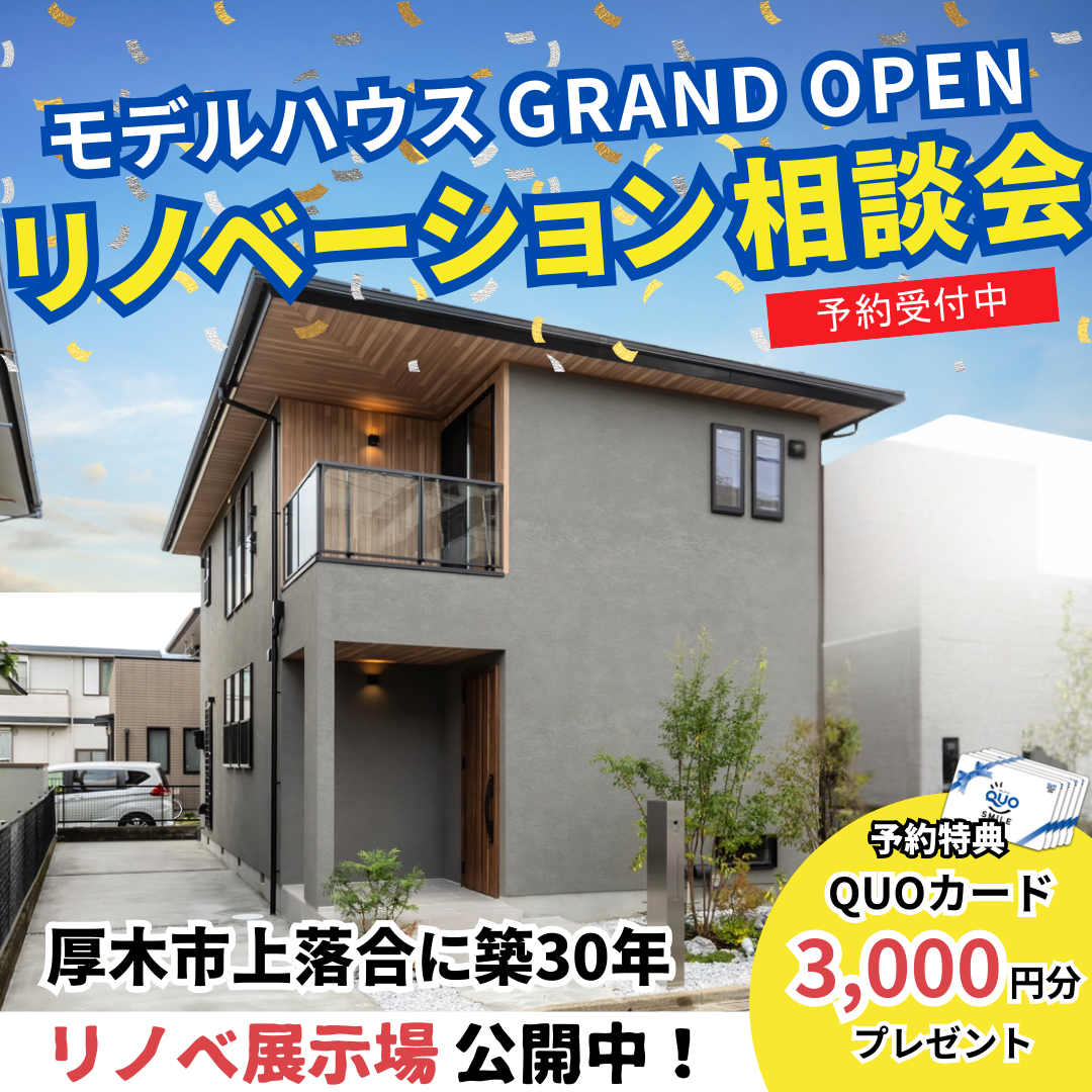 リノベハウスは、厚木市を中心に耐震2倍・断熱2倍・収納2倍・デザイン性UPを叶える性能向上リノベーション専門店です。